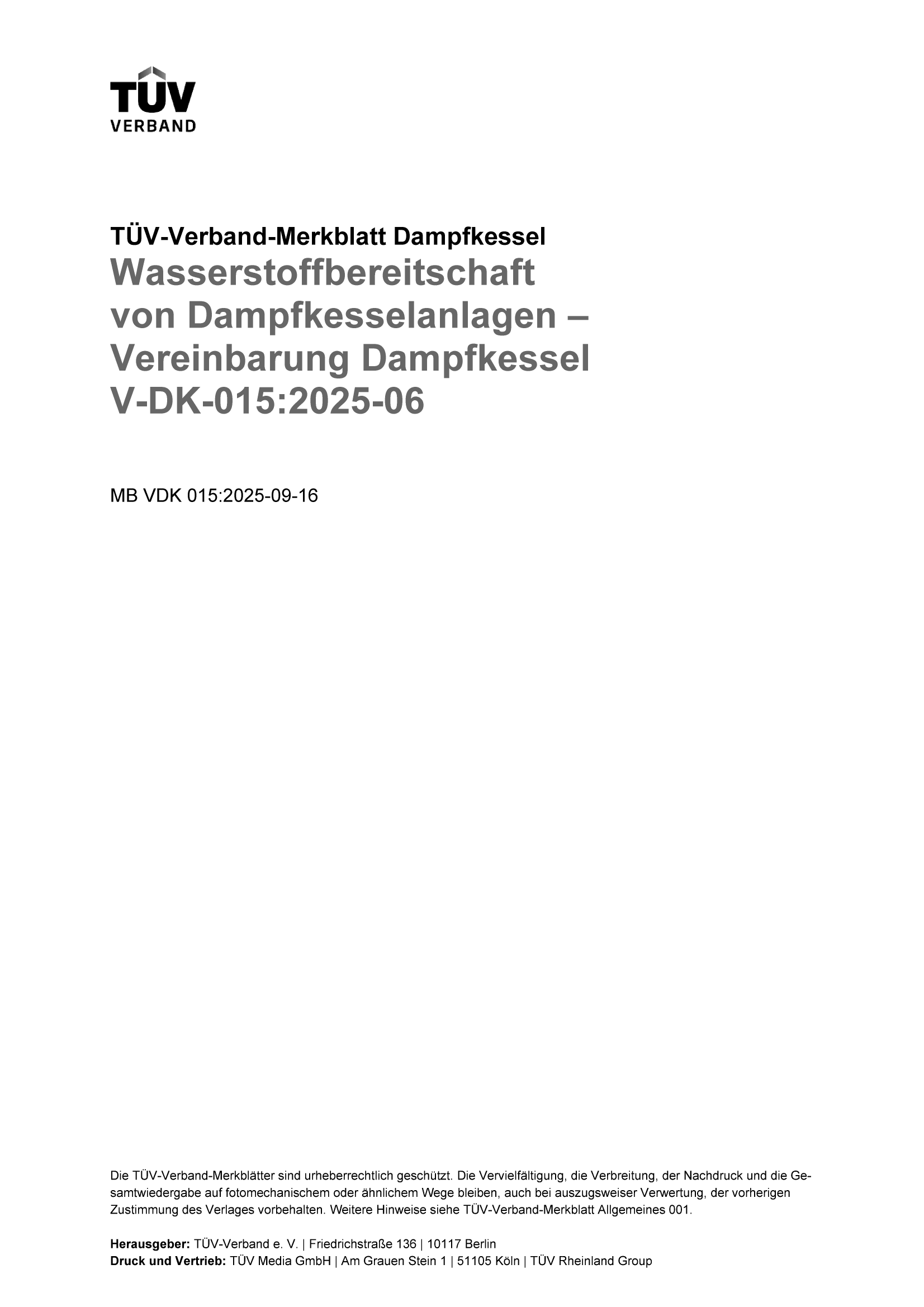 Wasserstoffbereitschaft von Dampfkesselanlagen; Vereinbarung Dampfkessel V-DK-015:2025-06