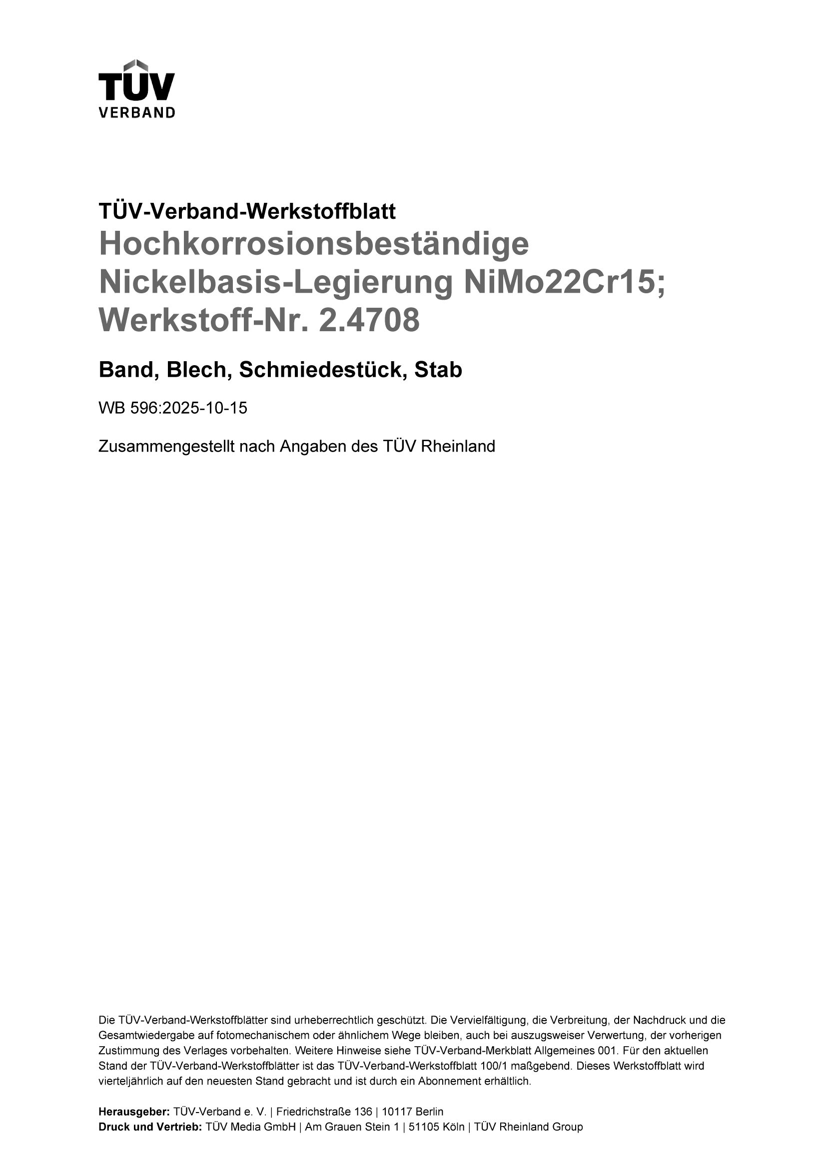TÜV-Verband - Werkstoffblatt - WB 596