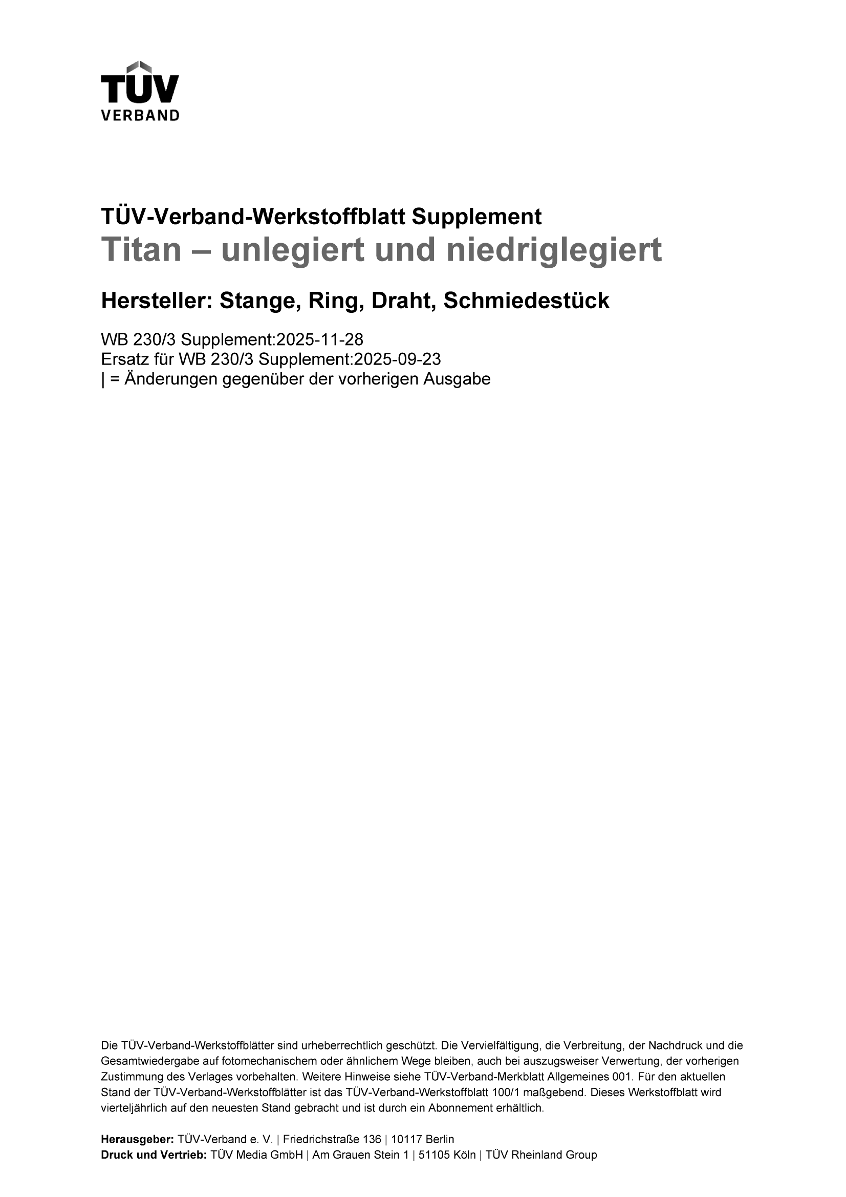 TÜV-Verband - Werkstoffblatt - WB 230/3 Supplement