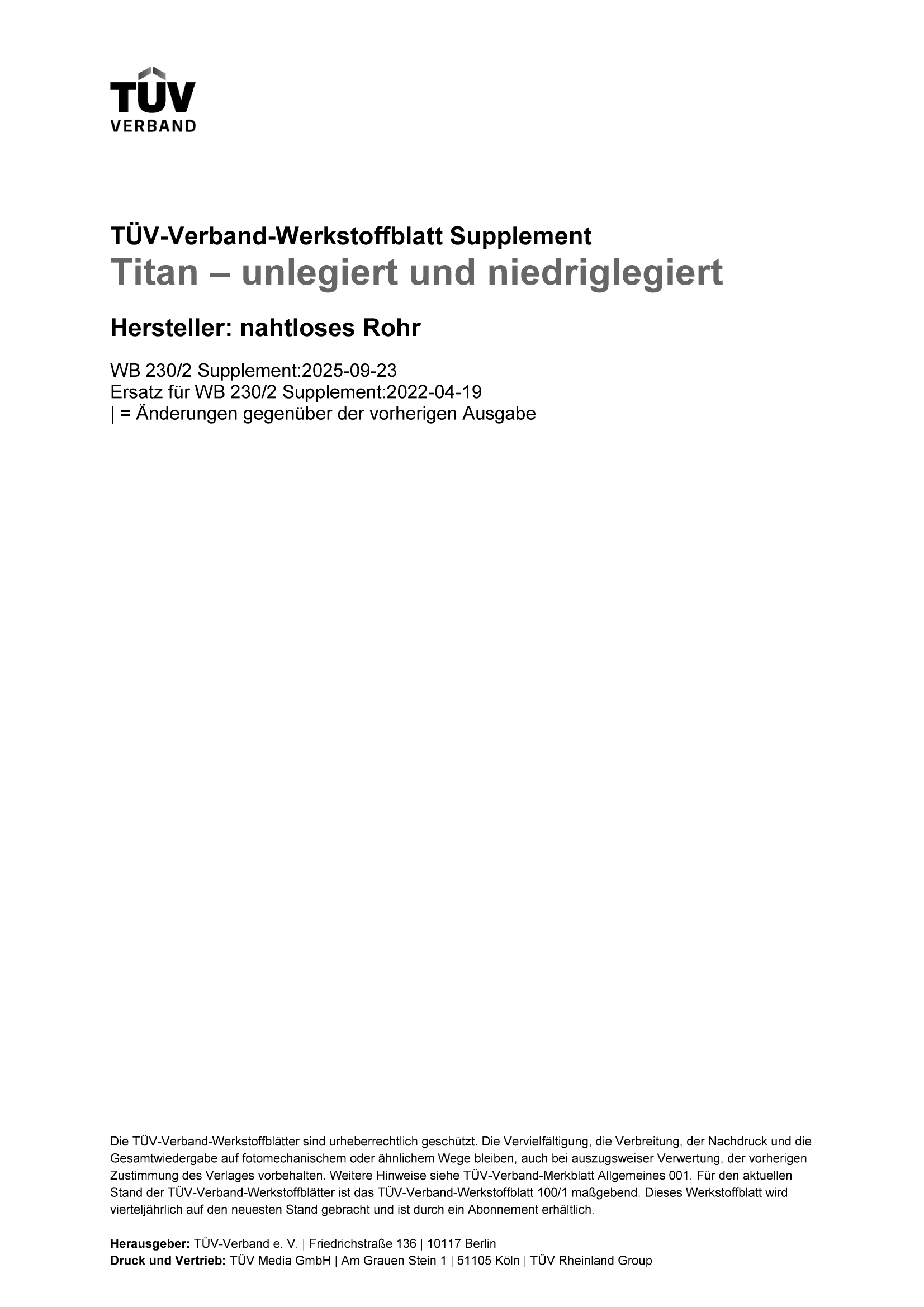 TÜV-Verband - Werkstoffblatt - WB 230/2 Supplement