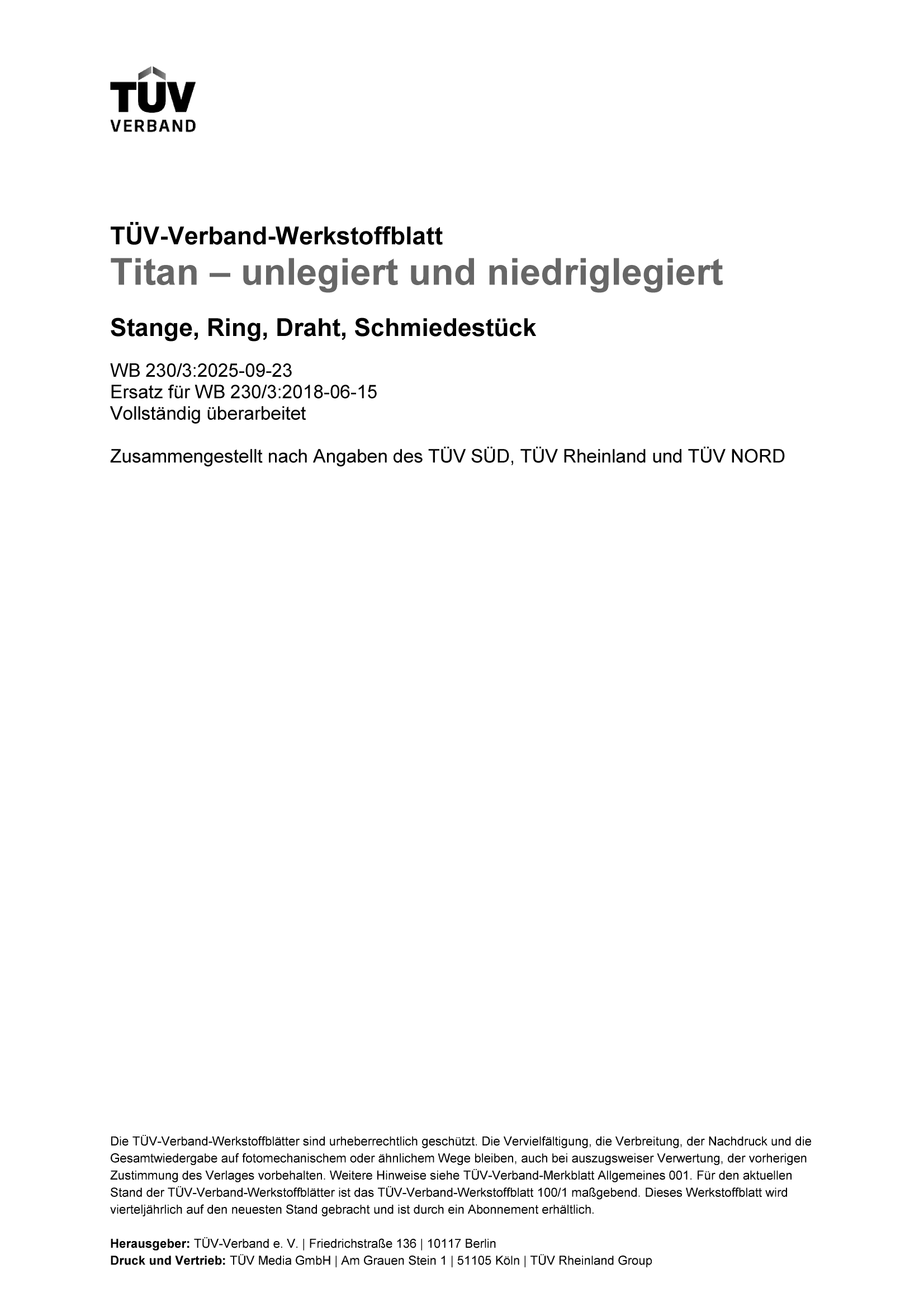 TÜV-Verband - Werkstoffblatt - WB 230/3